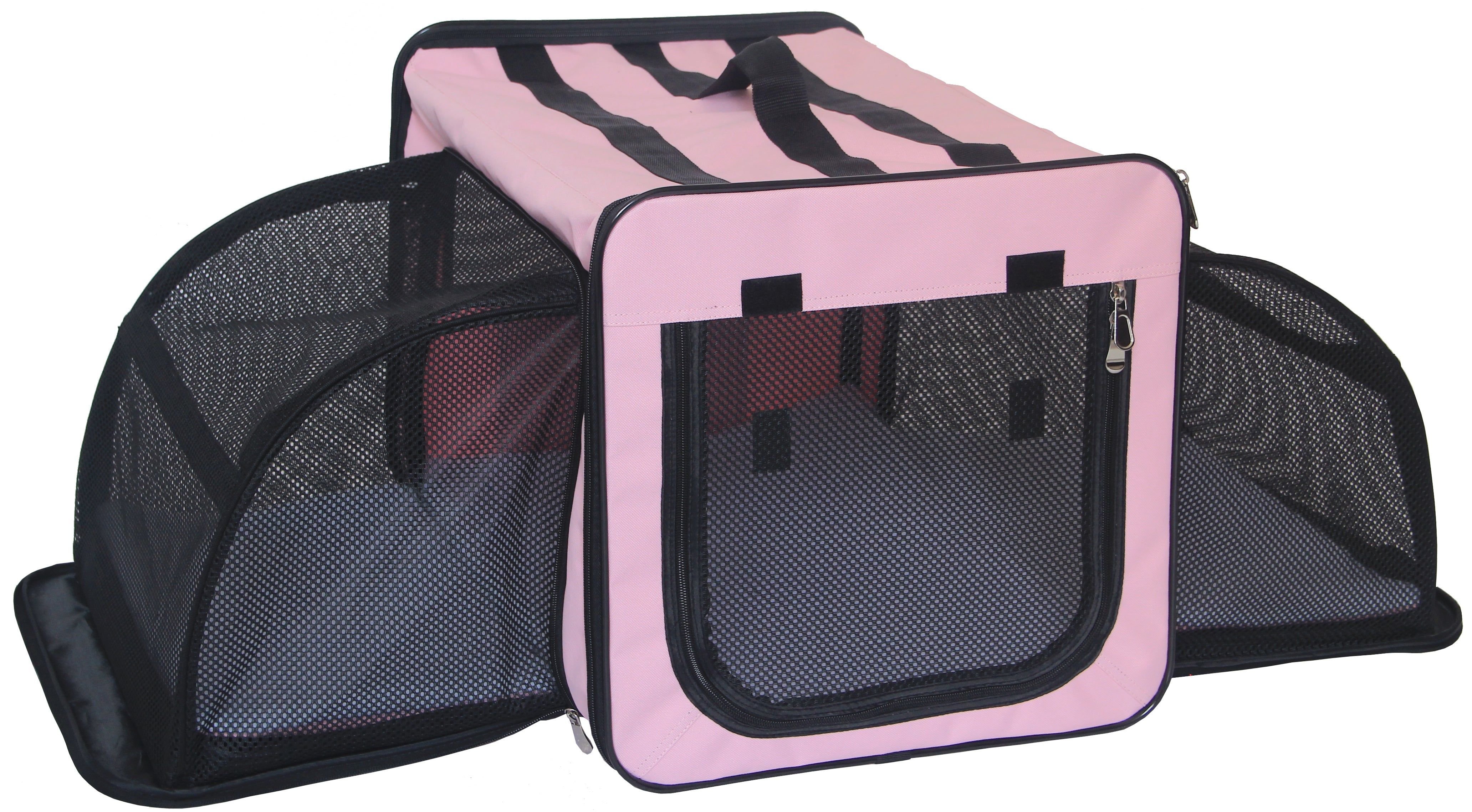 Home > Pet Life Capacious Dual-Expandable Wire Folding Lightweight Collapsible Travel Pet Dog Crate - Pink - Medium